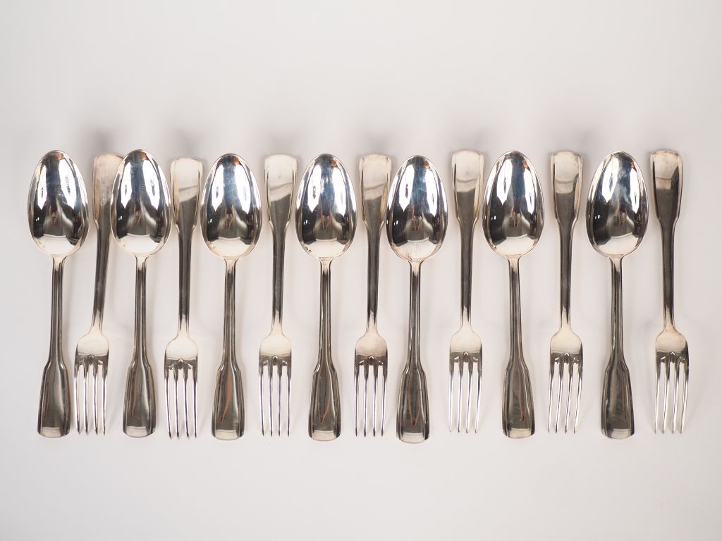 Suite de sept couverts de style Art déco en argent 835/1000. M.O : Wolfers Poids. 1138 g