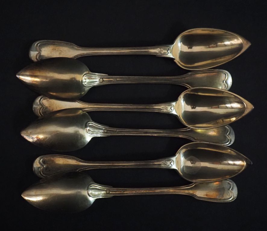 Suite de six petites cuillères en vermeil 925, poinçon Minerve, modèle à filet. Long. 13,9 cm Poids. 124 g