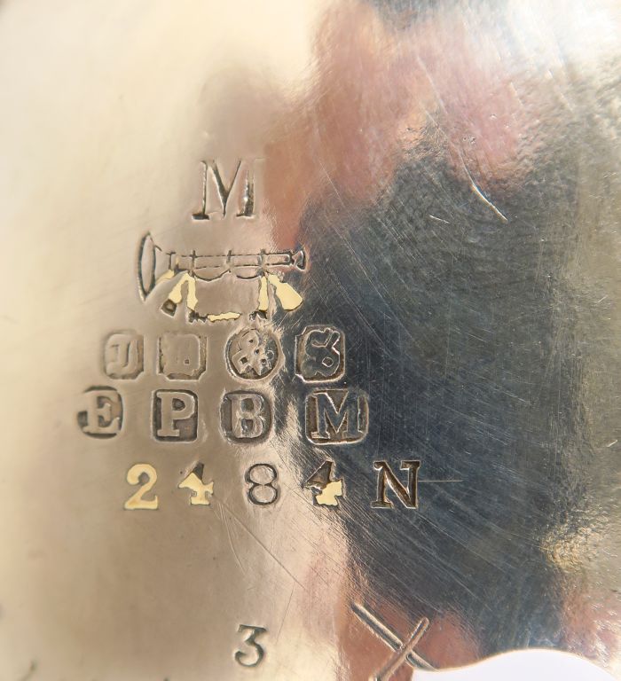 Théière en argent anglais, à décor de godrons. Manche et prise en ébène ou bois noirci. Poids tel. 711 g (prise à refixer)