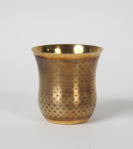 Timbale de forme tulipe en vermeil, poinçon Minerve, à décor guillauché et d'un monogramme dans un cartouche. M.O : CT. Poids: 108 gr (LP : 10872 )