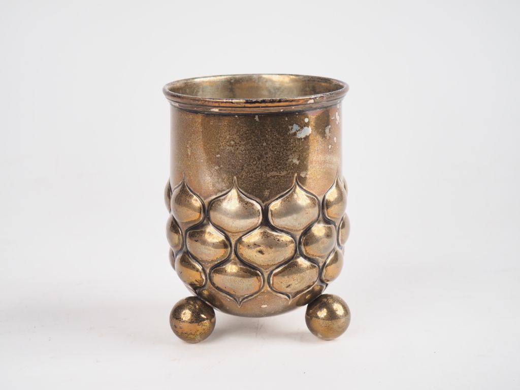 Timbale en argent étranger, à décor de cœurs. Poinçonnée. H. 12 cm. (Enfoncements).