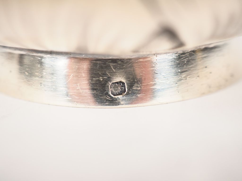 Vide-poche de style Art Nouveau en argent, poinçon Minerve, à décor de feuille. Reposant sur un petit piédouche. M.O : R D Diam. 11 cm H. 6,4 cm Poids. 158 g