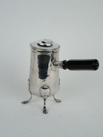 Chocolatière en argent, poinçon au premier coq, manche en bois noirci (remontage). Poids tel : 550 g
