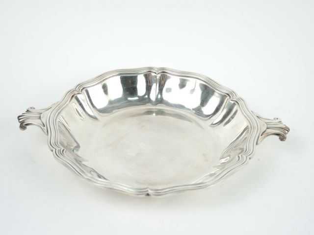 CHRISTOFLE. Plat creux à anses, bords chantournés à filets