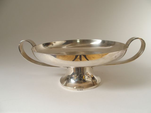 FJERDINGSTAD pour Christofle. Coupe à anses sur piedouche en métal arg...