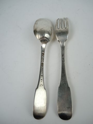Fourchette et cuillère en argent XVIIIe. Poids : 139 g