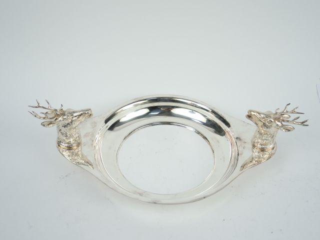 Monture de plat en métal argenté, prises en forme de têtes de cerfs.