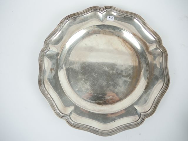 Plat rond en argent, poinçon Minerve, bords chantournés. MO : ML. Poids : 968 g