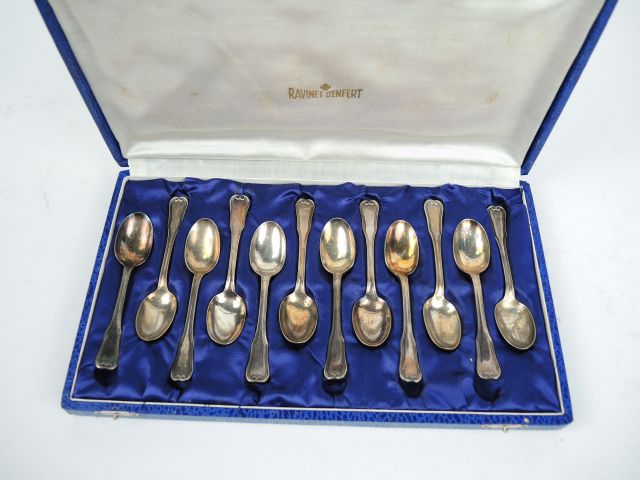 RAVINET D'ENFER. Suite de 12 petites cuillères en métal argenté. Dans leur coffret