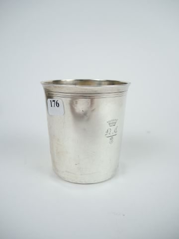Timbale en argent, poinçon Minerve, monogrammée. Poids : 70 g