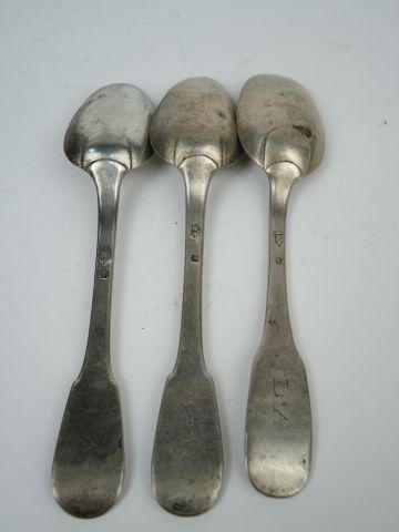 Trois cuillères en argent XVIIIe. Poids : 215 g