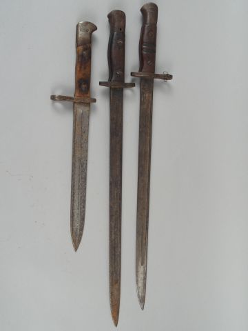 10-lot de baïonnettes (3) sans fourreau composé d’une baïonnette allemande modèle 71/84, un Anglaise 1907, et une U.S. 1917. (2-)
