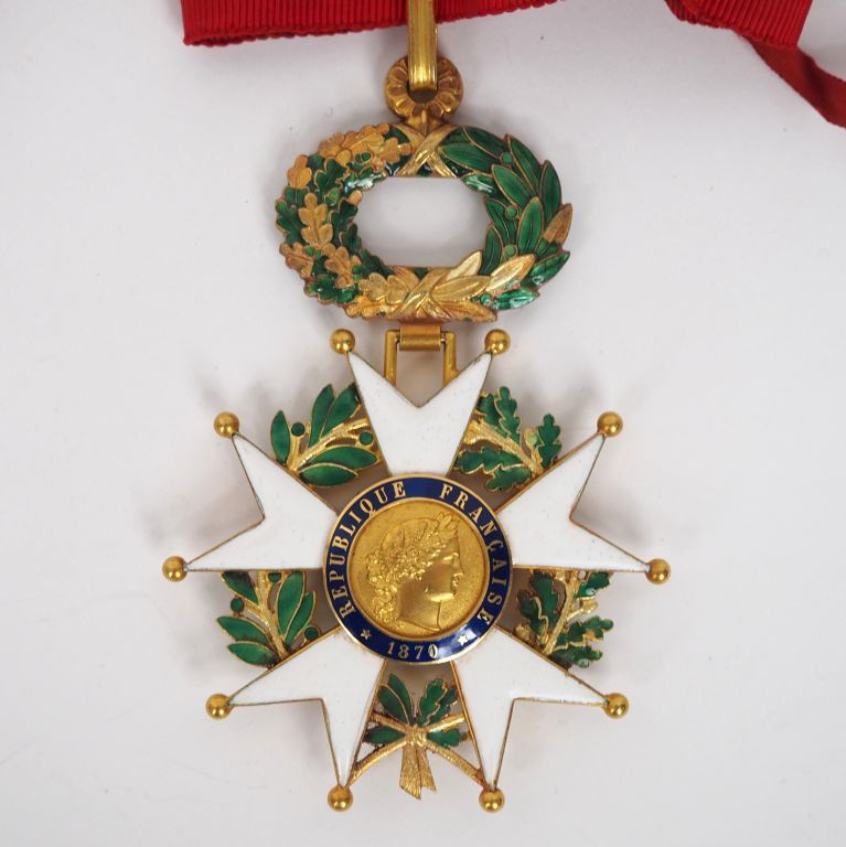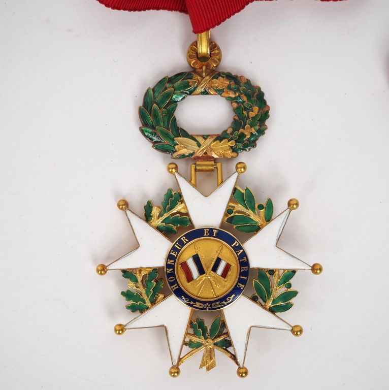 FRANCE ORDRE DE LA LEGION D’HONNEUR Etoile de commandeur d’époque IIIe République. Or et émail (éclats à la couronne). Fine cravate avec attache. Poinçon tête d’aigle et d’orfèvre Ouizille Lemoine. 86 x 57 mm. Poids brut : 41 g T.B. à T.T.B. Dans son écrin marqué à l’or LEGION D’HONNEUR COMMANDEUR de la Maison Ouizille Lemoine Rue de Castiglione 10.