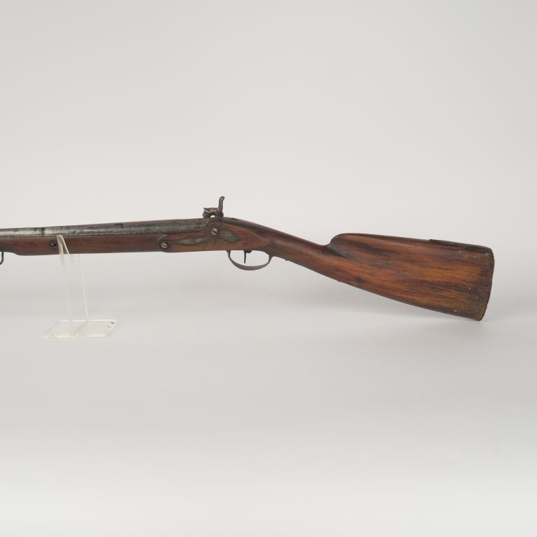 Fusil à silex, un coup, transformé à percussion. E.M. (Accident et piqûres). Vers 1780.
