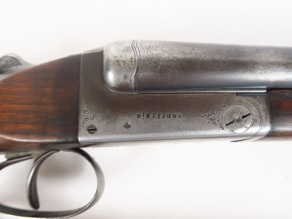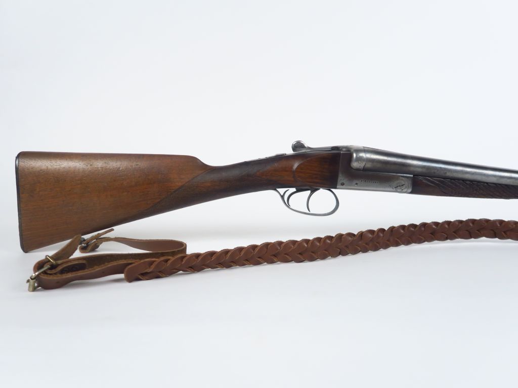 Fusil juxtaposé calibre16/70 numéro 5047.Fabrication "Verney-Caron à St Etienne" systéme Anson et Delay, canons de 700 mm de long, monture en noyer forme 1/2 pistolet, devant grossièrement requadrillé,à rebronzer, mécanisme fonctionnel, dans un fourreau en skaï vert. Arme de catégorie C. (2-)