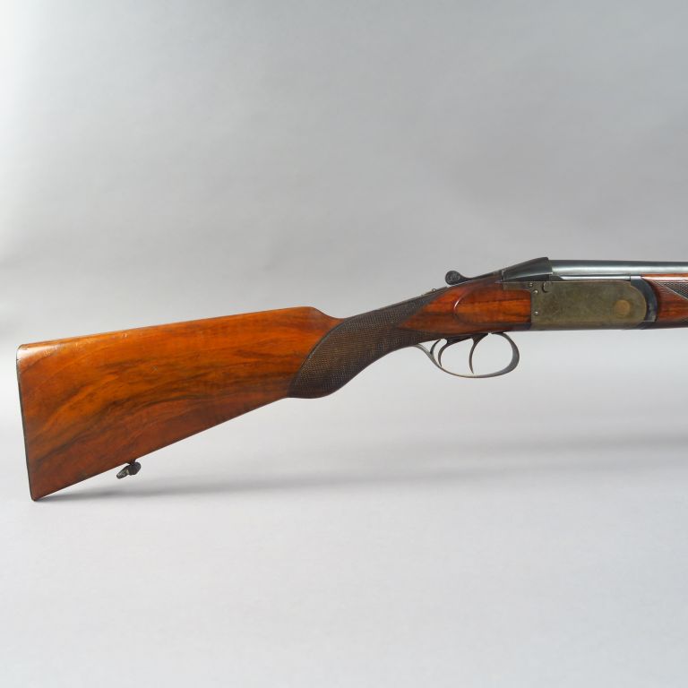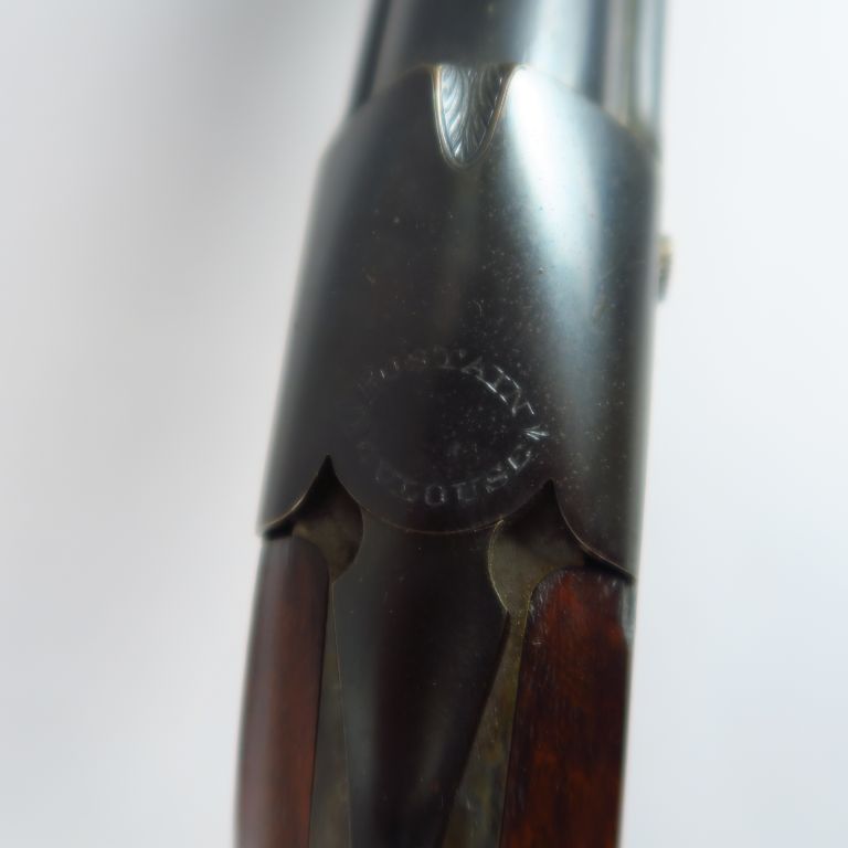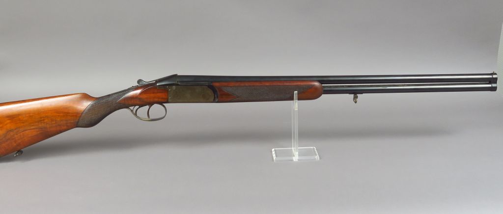 Fusil superposé Stéphanois Damon Petrick nr 1533 calibre 20/65 à extracteur, canons de 655mm sans bande alésage 15,9mm les deux canons, 1/4 de choke en bas 3/4 de choke en haut, canons dans leur alésage d'origine. Arme double détente, crosse demi pistolet de 360 mm de long, plaque de couche bakélite, monture noyer vernis quadrillé, bascule jaspée, tuile bronzée, signature du revendeur "Rostain Toulouse", mécanisme fonctionnel. Arme de catégorie "C". Etat 1-. REF RGA : AV780