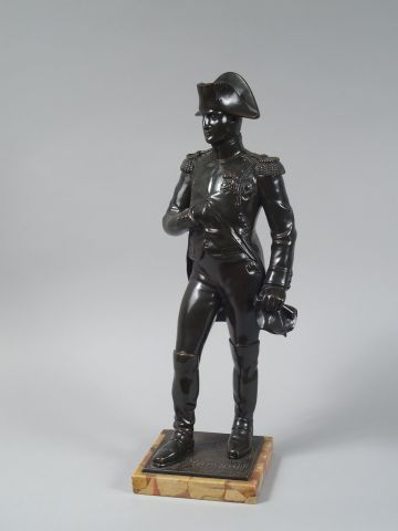 HAMANT ? 'Napoléon Bonaparte en pied'. Sculpture en bronze à patine brune, sur un socle en marbre brèche. H. 54 cm
