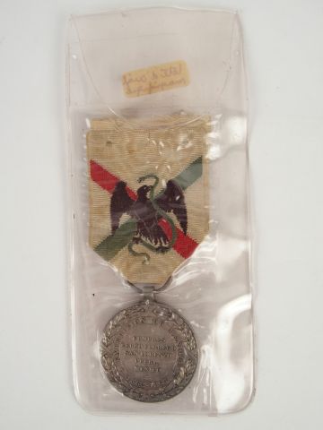 Médaille commémorative de l’expédition du Mexique (1862/1863), attribuée à 3800 vétérans de cette campagne, module argent signé « Barre », ruban blanc croisé de rouge et vert aigle du Mexique affrontant un serpent. 1.