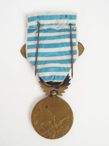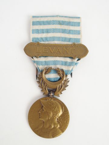 Médaille du levant, barrettes « LEVANT » bronze. Ruban bleu à rayures horizontales blanches. 1
