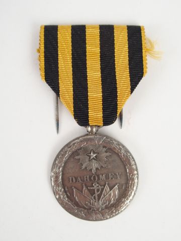 Médaille en argent commémorative de l'expédition au "DAHOMEY", ruban ...