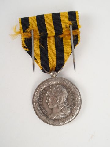 Lot de Médaille en argent commémorative de l'expédition au "DAHOMEY", ruban au prix de 50 à 60 € en vente aux enchères par l'hôtel des ventes Primardeco