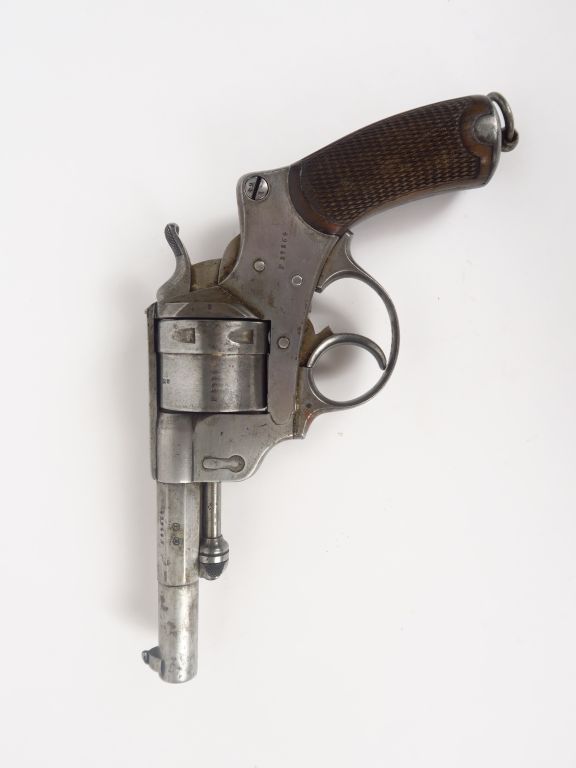 Révolver réglementaire Français calibre 11mm Modèle 1873 de troupe de la série 1875, arme dans son polissage d'origine, toutes pièces au même numéro, état mécanique parfait (indexation, percussion simple et double action, extraction).Arme de catégorie « D ». (1)