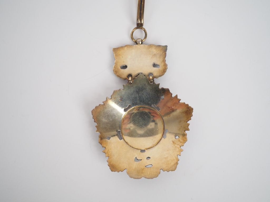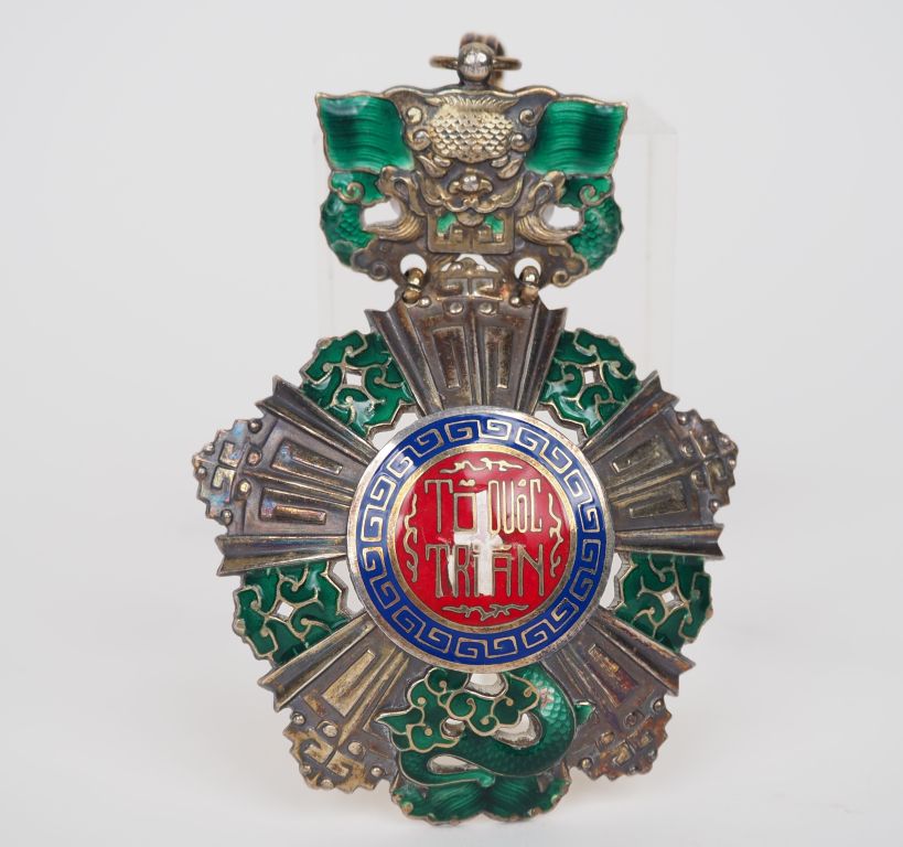 VIETNAM ORDRE NATIONAL Etoile de commandeur en vermeil et émail (éclats au centre). 86 x 60 mm. Poids brut : 64 g. T.B.