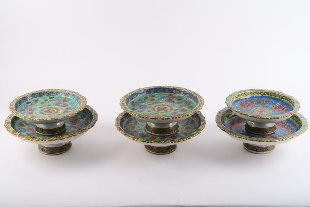 6 présentoirs XIXème en porcelaine de Canton. Faits pour l'Indochine