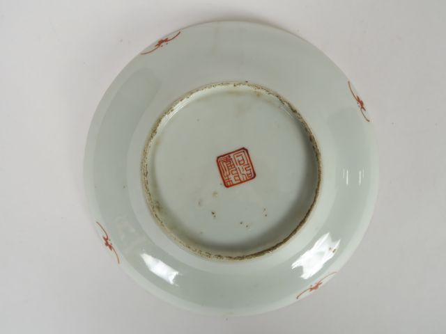 Assiette en porcelaine et émaux de la famille rose, à décor de papillons parmi des fleurs. Chine, fin XIXème siècle. Diam. 19 cm