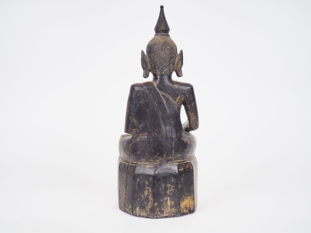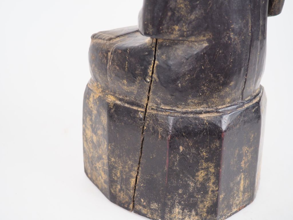 BIRMANIE, XIXème siècle. Statuette en bois laqué bouddha dans la position de la prise à témoin H. 40 cm