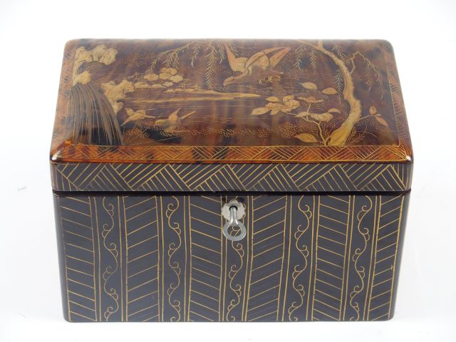 Boite à thé en écaille blonde à décor doré d'oiseaux. Japon vers 1900