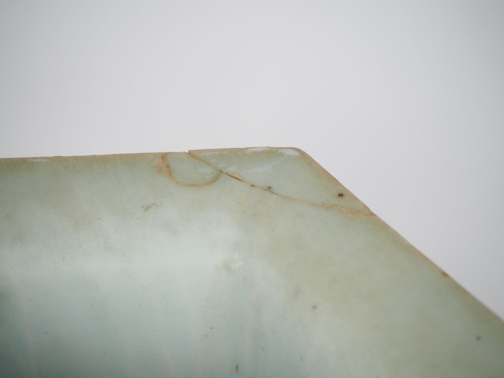 Chine, époque Guangxu vers 1880 Trois vases de forme hexagonale en porcelaine bleu blanc à décor de cité lacustre et prunus en fleurs. Eclats, manques et restaurations. H. 33 cm 39 cm et 44 cm