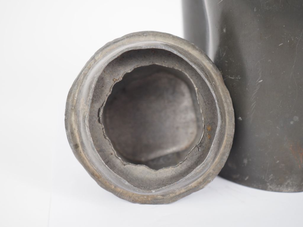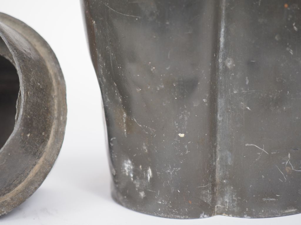Chine, fin XIXe siècle Boîte à thé floriforme en étain. H. 18 cm (Petites déformations)