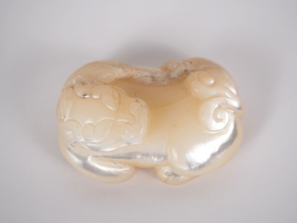 Chine, fin XVIIe – début XVIIIe siècle Sujet en nacre, représentant un dragon, la tête tournée. L. 5,4 cm