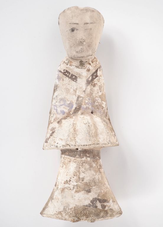 Chine, période Han Mingqi en terre cuite avec traces d’engobe, représentant une dame de cour. H. 28,5 cm