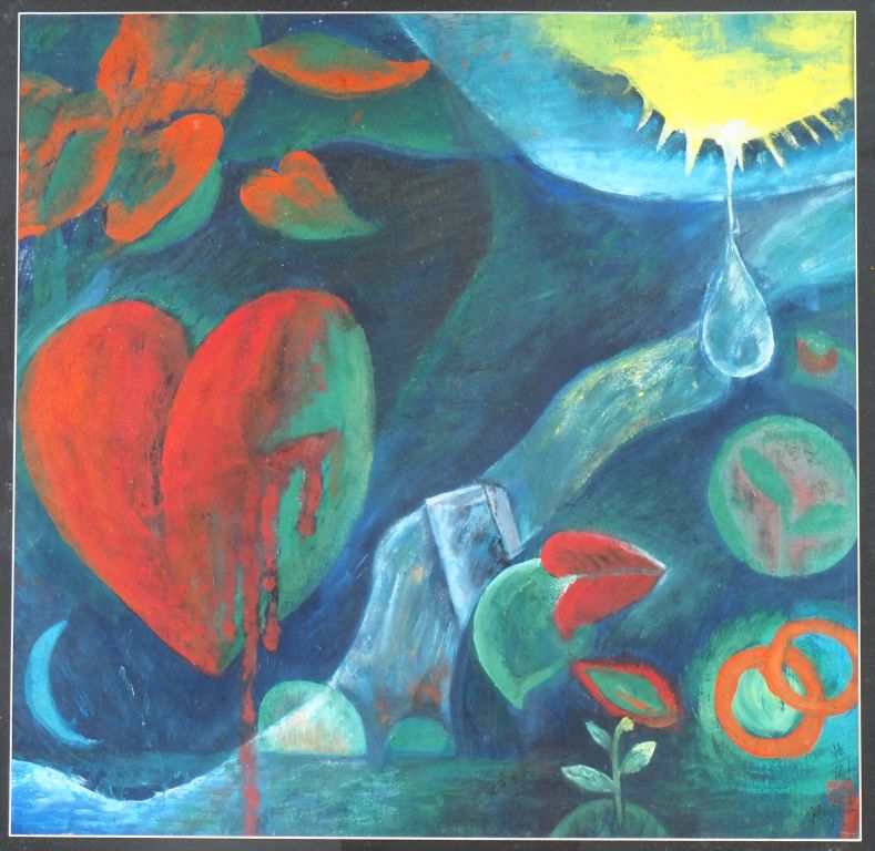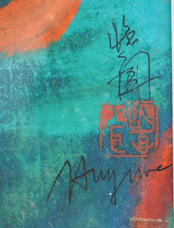 Chine, travail contemporain Gouache sur papier représentant une abstraction de la nature. Signée en bas à droite Hu Wen (?) Dim. 63 x 64 cm