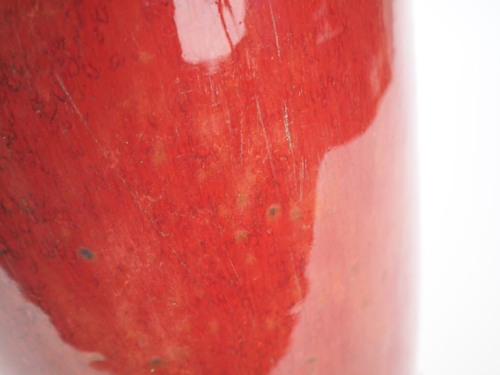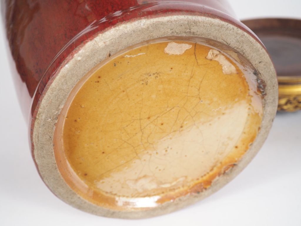 Chine, XIXe siècle, Important vase balustre, en porcelaine émaillée sang de bœuf, monture en bronze européenne. Col coupé. H. 59 cm (hors socle)