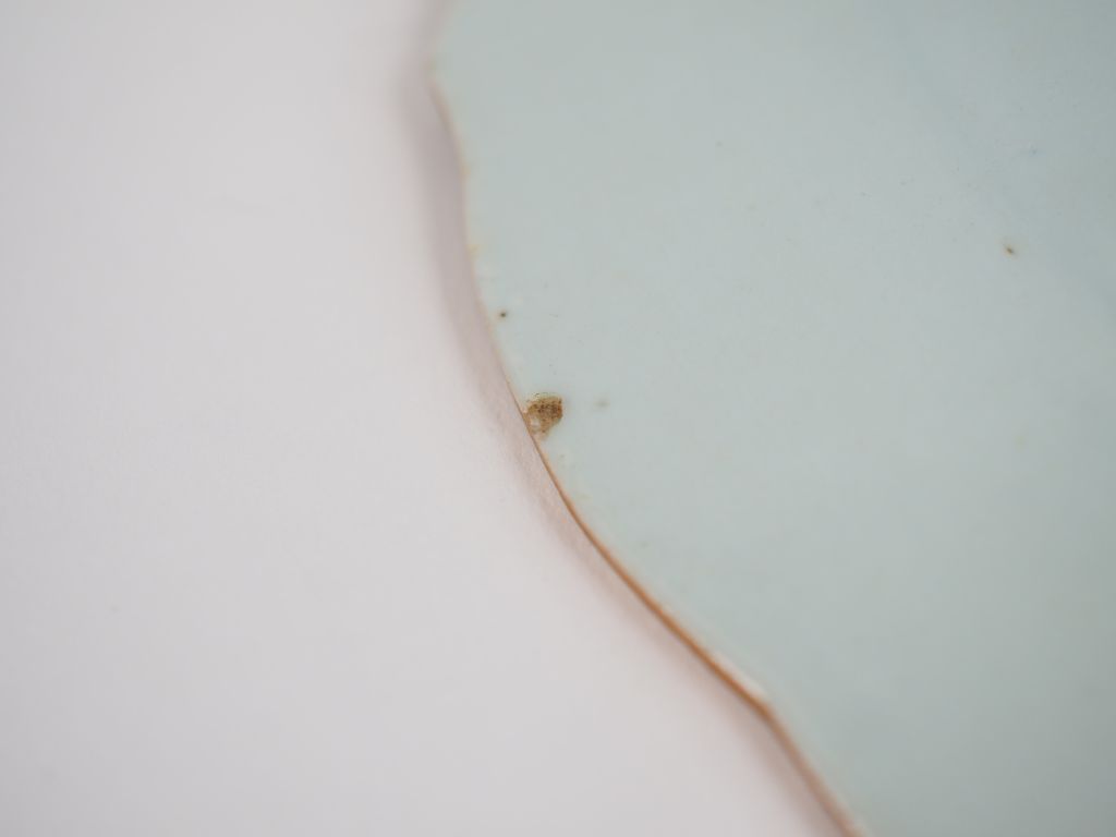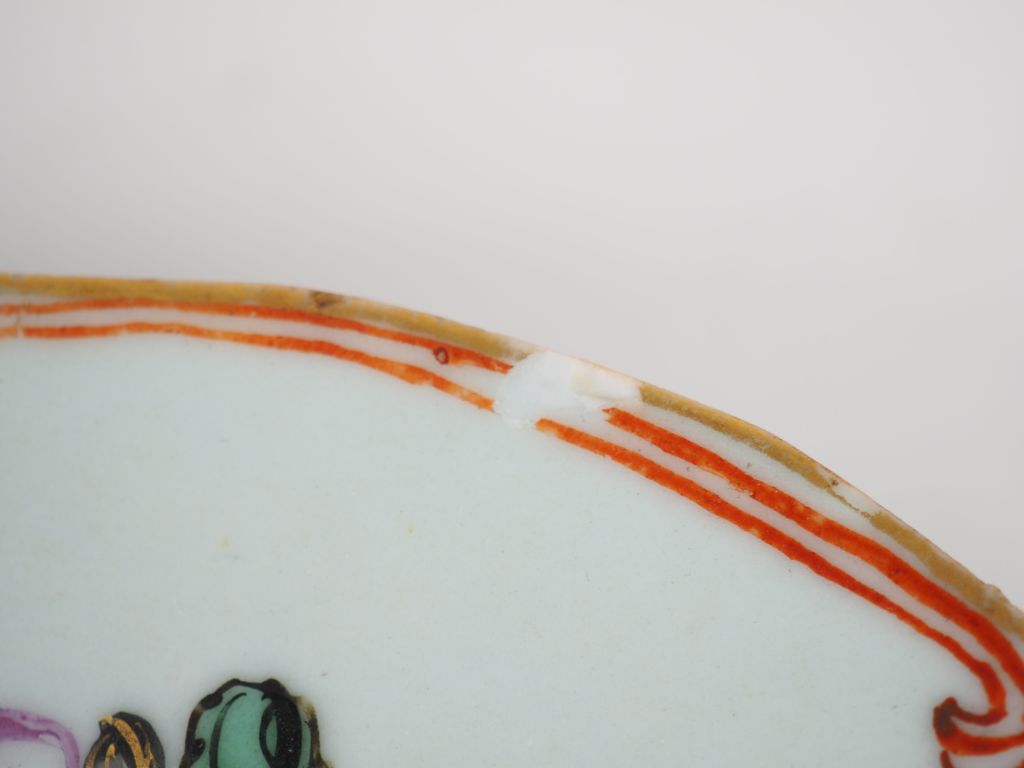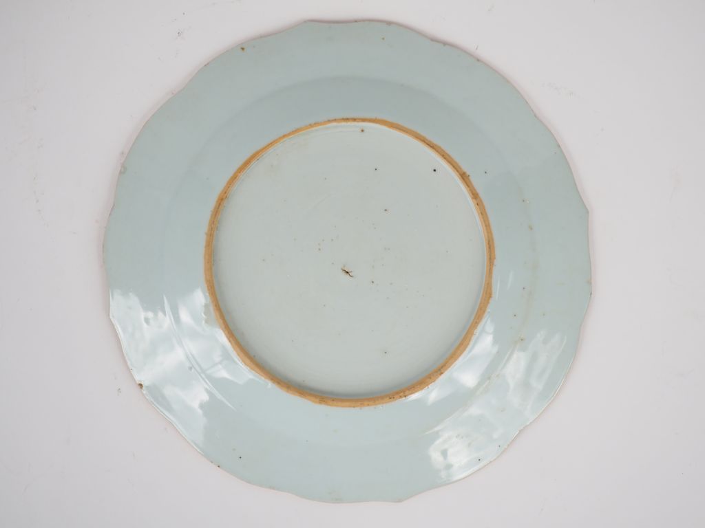 Chine, XVIIIe siècle, Assiette floriforme en porcelaine et émaux de la famille rose, décor de bouquet de fleurs. Diam. 23 cm. (petites égrenures)