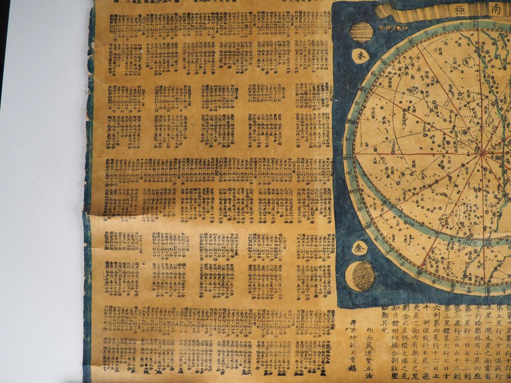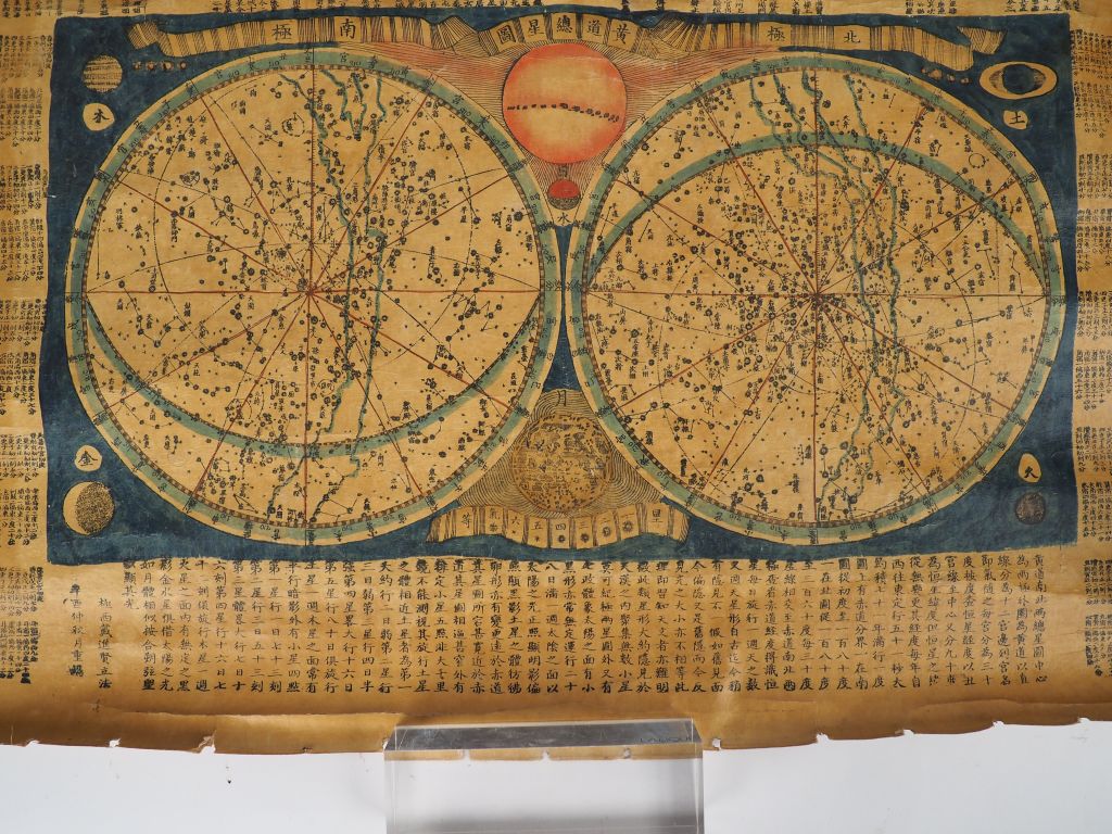 Chine, XXe siècle, Carte d’astronomie Chinoise. Trace de polychromie. Dim. 118,5 x 62,5 cm Usures