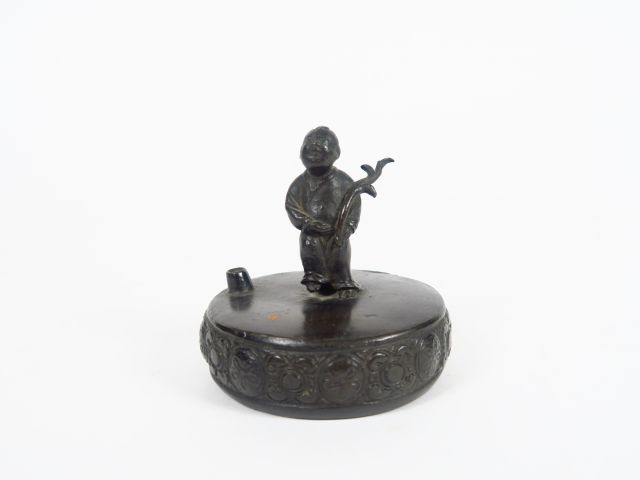 Compte-gouttes Muzuhire en cuivre à patine brune, surmonté d'un enfant. Japon, XIXèm siècle. H. 7,5 cm