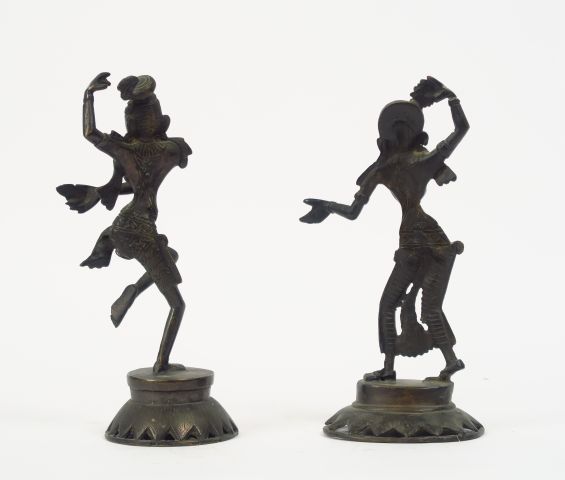 Lot de Couple de danseuses indiennes en bronze vers 1920. H. 28 cm au prix de 40 à 50 € en vente aux enchères par l'hôtel des ventes Primardeco