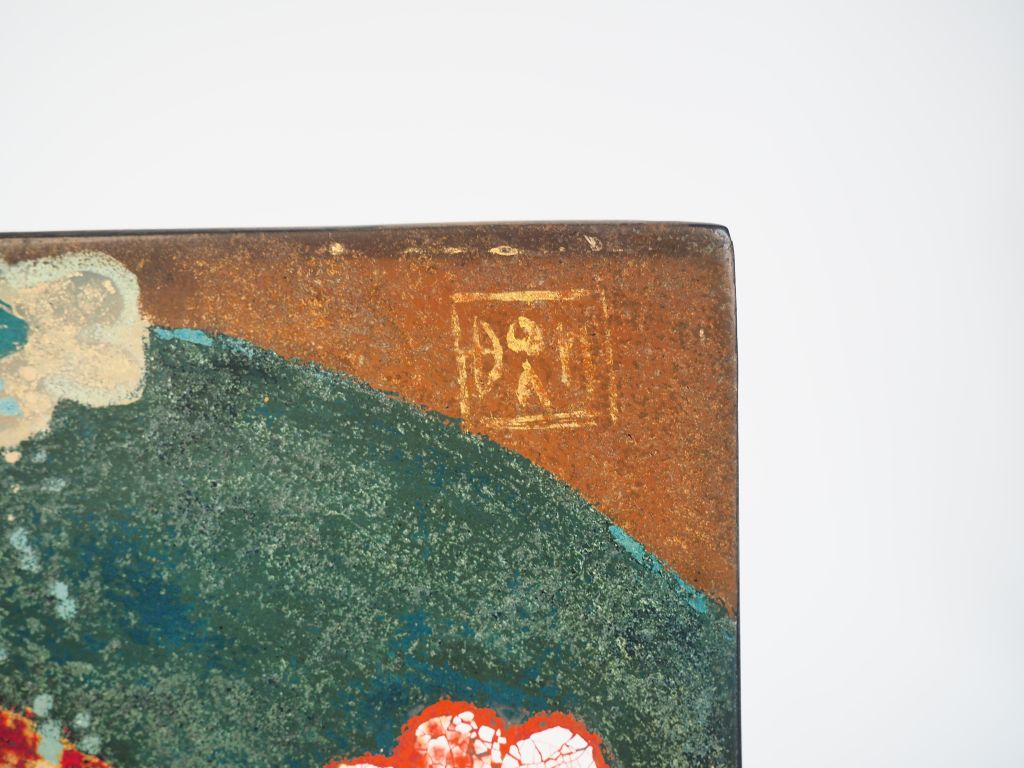 Ecole de Hanoï. Panneau de laque "Portrait de jeune fille Moï en tenue traditionnelle". Ethnie du Nord du Vietnam vers 1930-1940 Dim. 20 x 18 cm