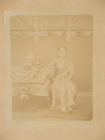 Ensemble de 4 photographies en noir et blanc et polychromes 'souvenirs du protectorat français' et 'couple de dignitaires d'Extrême-Orient'