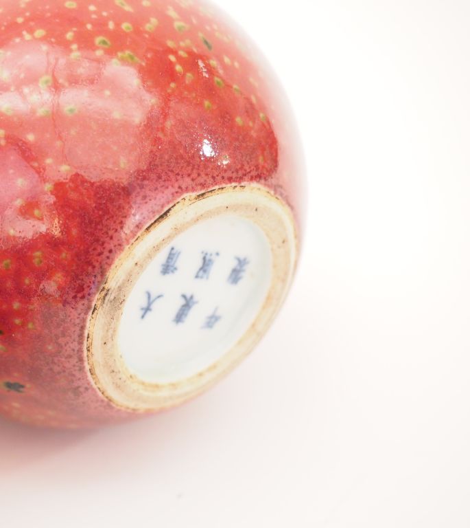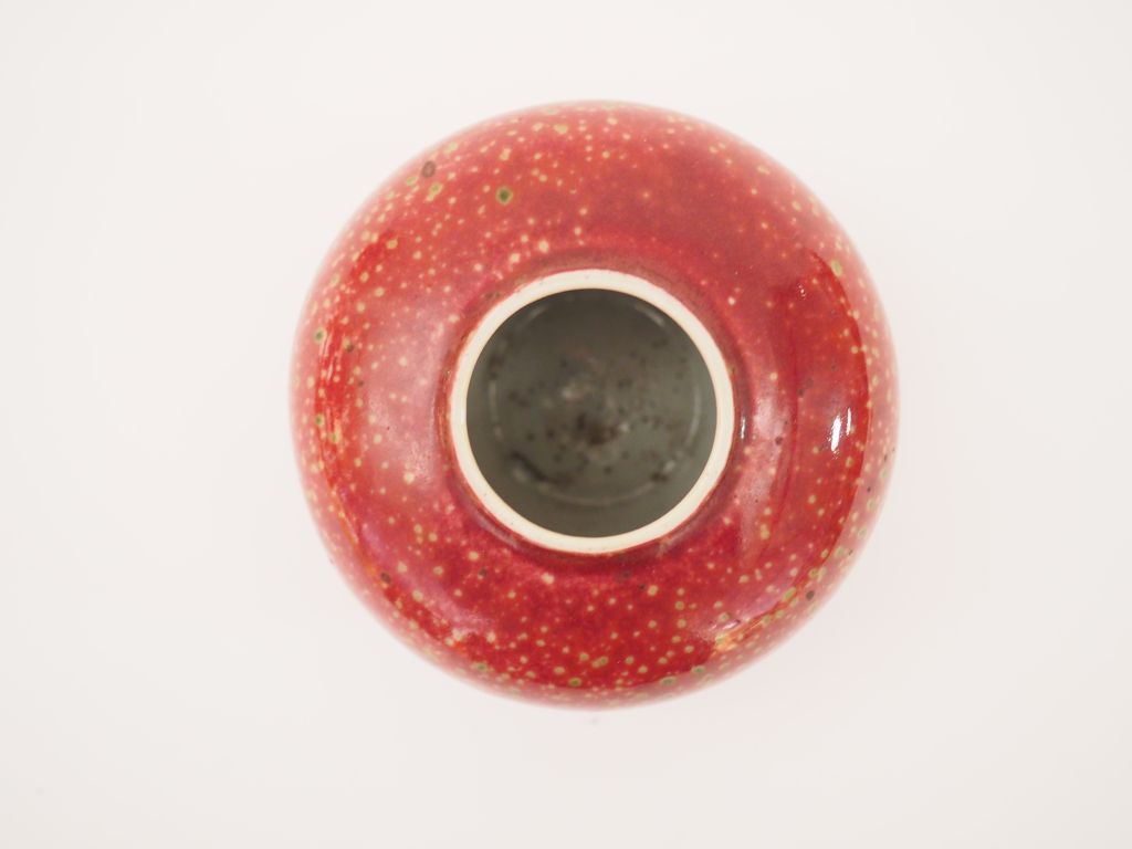 Godet de peintre en porcelaine et émail sang de bœuf reposant sur un fond céladon. Chine, marque Kangxi en Kaishu. H. 6,9 cm Diam. 8,7 cm