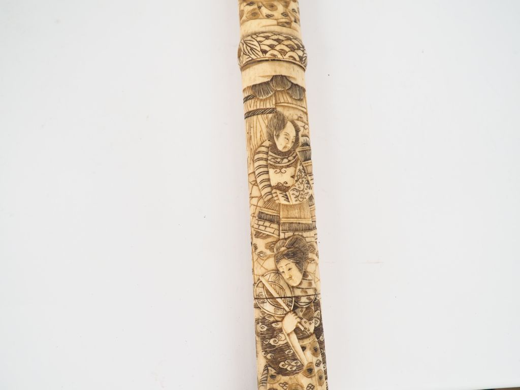 Japon, vers 1900, Important sabre en os, à décor de Samourai. L. 93 c...