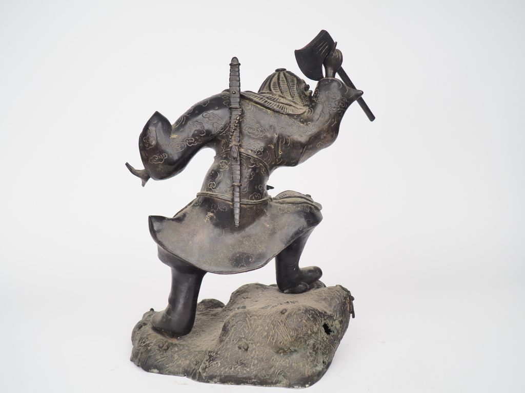 Japon, XIXe siècle, Statue en bronze à patine brune représentant un guerrier en armure. H. 34 cm