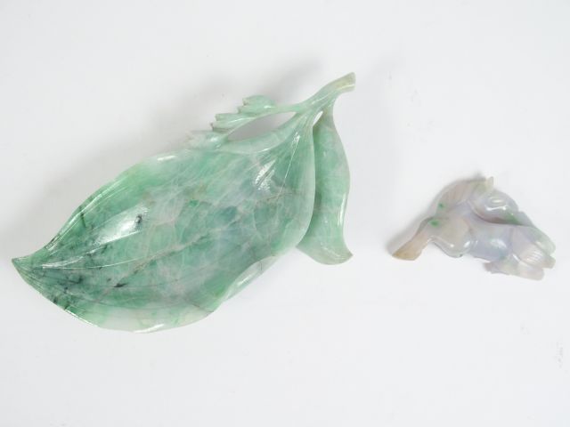 Lot comprenant une coupe et un petit cheval en jadéïte. Longueurs : 15,5 et 7 cm