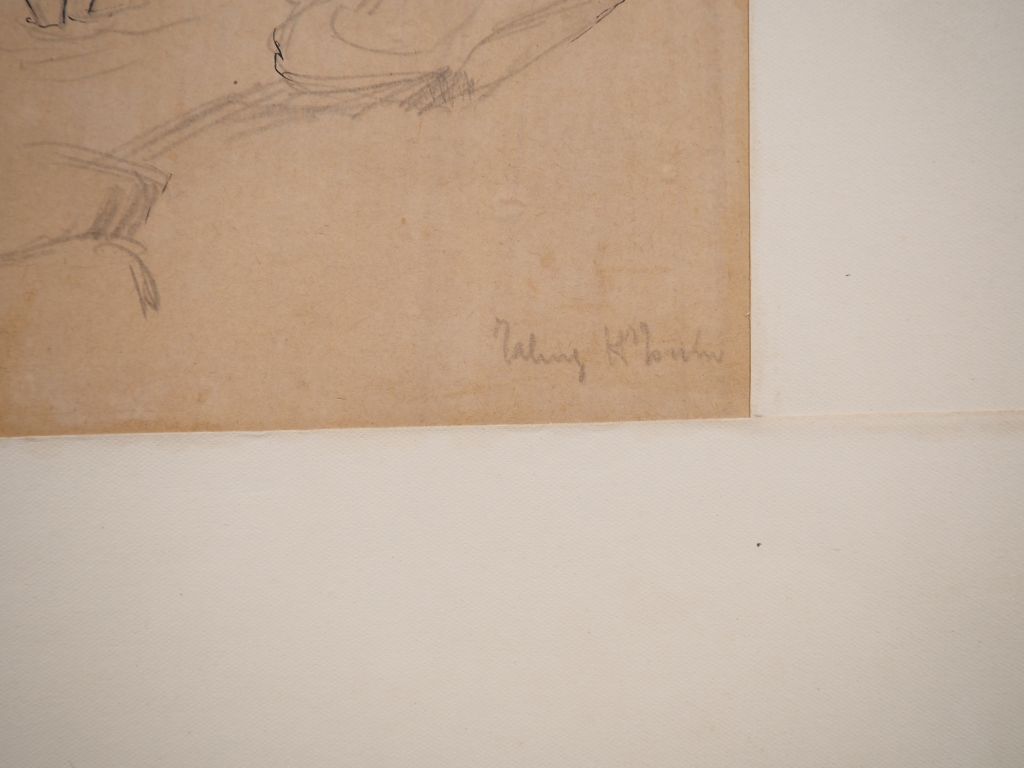 Louis Robert BATE (1898-1948, grand prix de l'Indochine en 1938). "Culture du riz dans le Haut-Tonkin". Dessin au crayon noir signé en bas à droite. Dim. 37,5 x 25,5 cm.