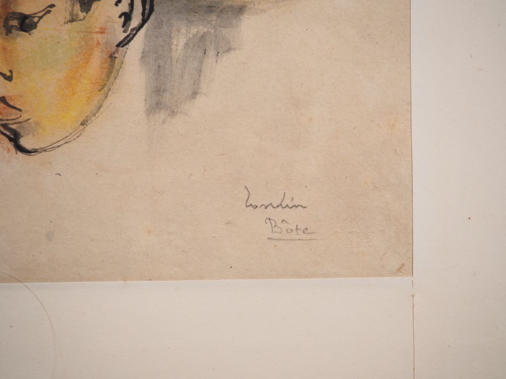 Louis Robert BATE (1898-1948, grand prix de l'Indochine en 1938). "Etude de visages de tonkinois". Encre et couleurs sur papier signée et située en bas à droite. Dim. 39,5 x 49 cm.