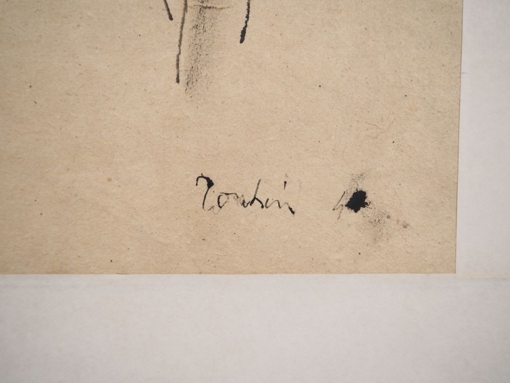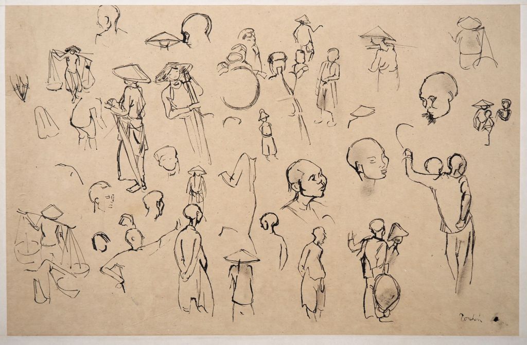 Louis Robert BATE (1898-1948, grand prix de l'Indochine en 1938). "Etude de têtes de tonkinois". Encre située en bas à droite. Dim. 35,5 x 55 cm.
